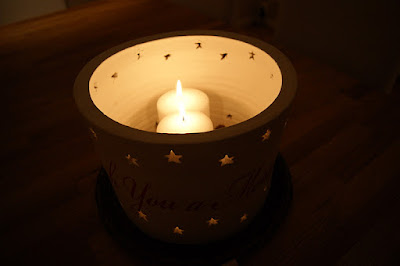 Var en tur innom Riviera Maison i dag, for de hadde et sånt gøyt tilbud for oss som liker dem på facebook, 40 prosent på alle julevarer!Da fant jeg denne fine lykten, og den passet helt perfekt på spisebordet vårt:-)